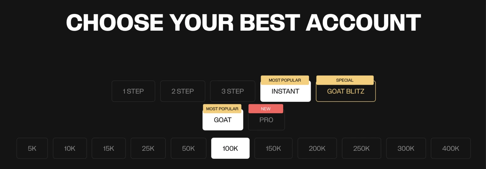 Goat Funded Trader (GFT) is a relatively new but rapidly growing prop firm (launched in 2022) with a wide range of account sizes and flexible rules.