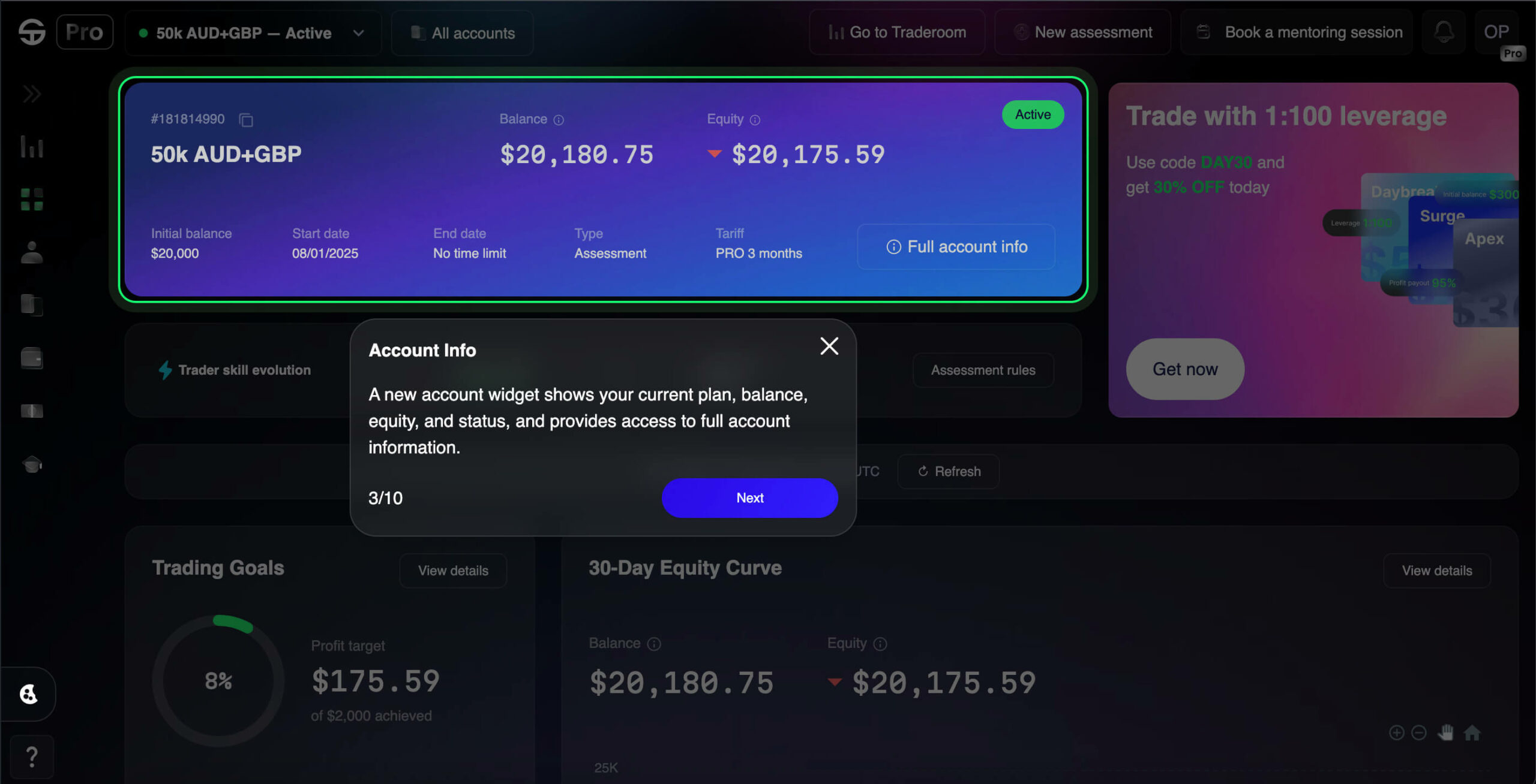 The new dashboard is clean, easy to use, and gives you a clear picture of where you stand. Think of it as your personal trading command center that we built to make your life comfier.