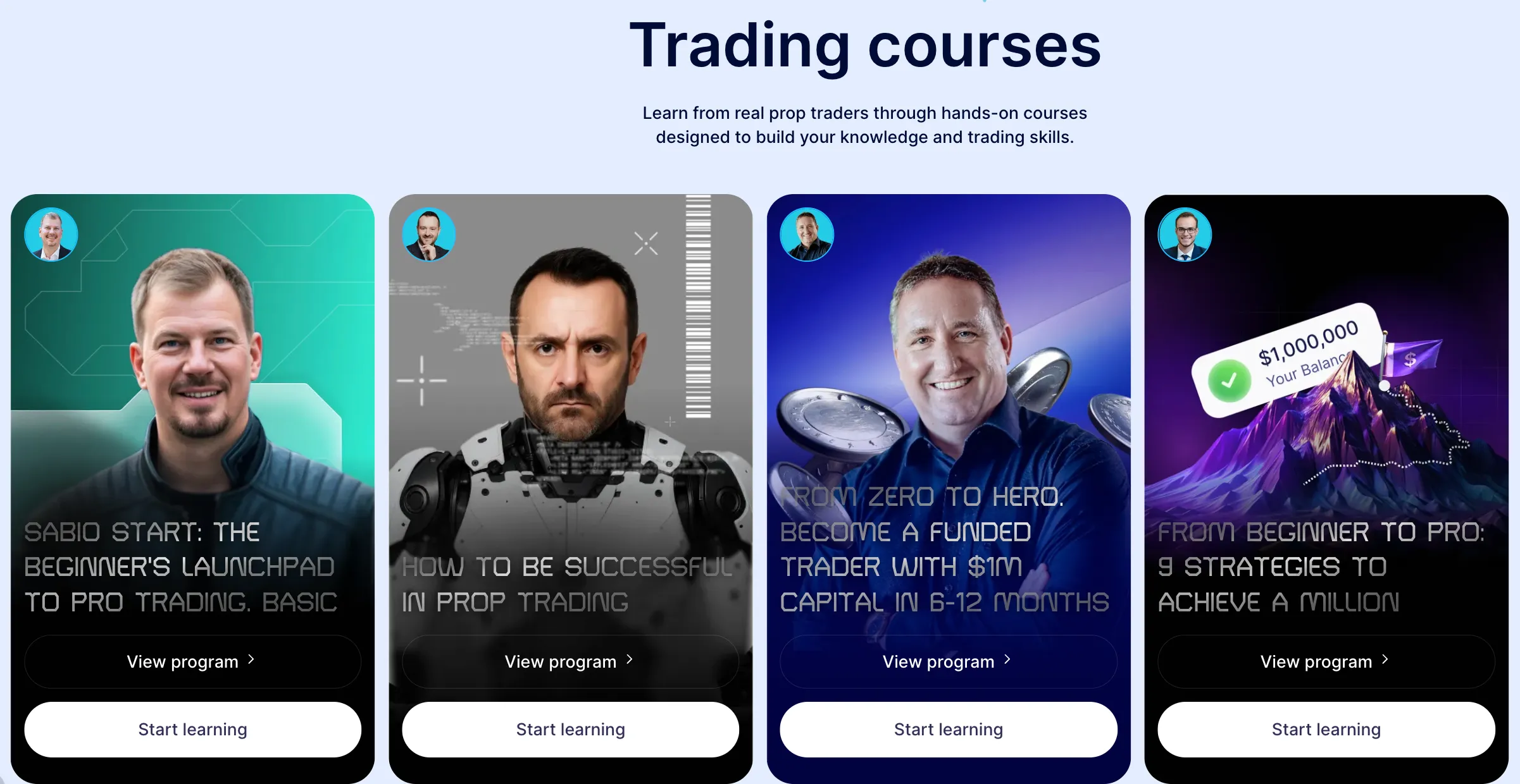 At SabioTrade, the Trading Academy is already included in all plans. This means that traders like you automatically gain access to our courses, strategies, webinars, and expert content when purchasing a prop trading package, without paying separately.